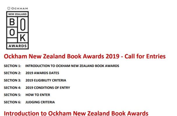 Entering the Ockham NZ Book Awards for 2019