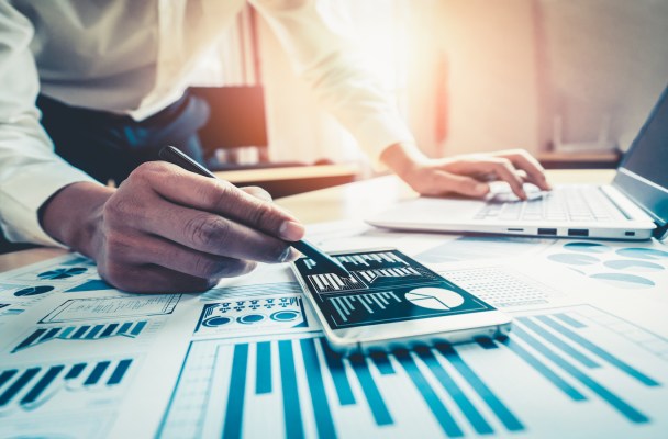 Businessman accountant or financial expert analyze business report graph and finance chart at corporate office. Concept of finance economy, banking business and stock market research.